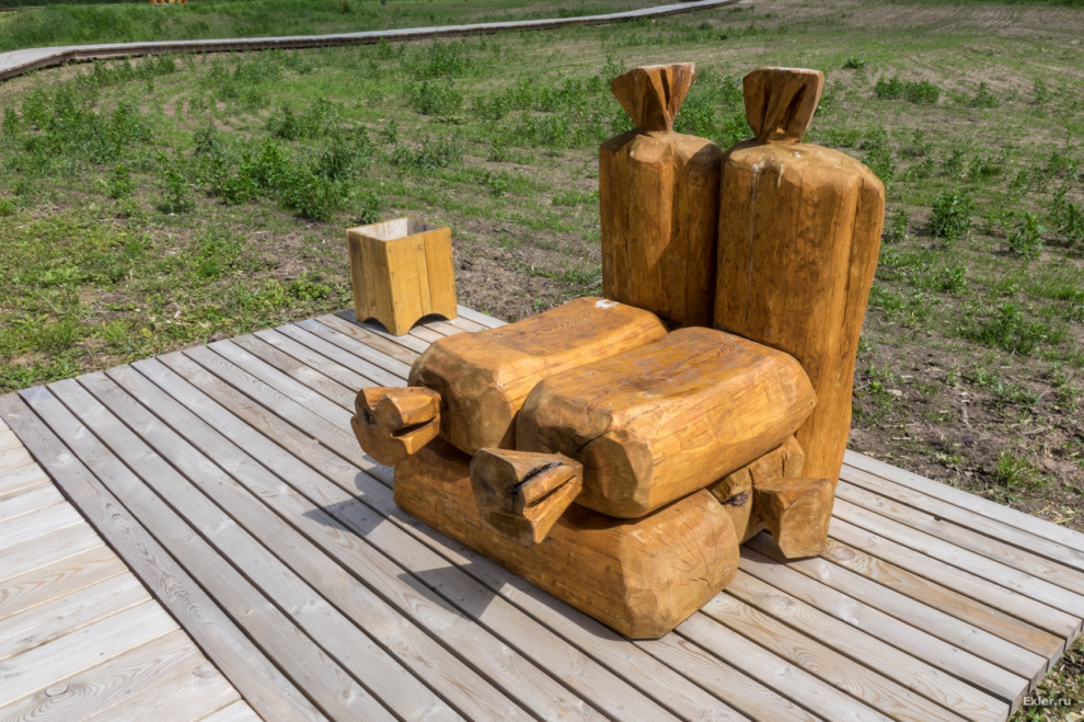 Через каждые 20-30 метров там попадаются места для отдыха с забавными резными фигурками.