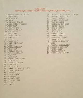 1987 год. Перепечатка списка, по которому пограничники отбирали кассеты и т.п. у моряков торгового флота.