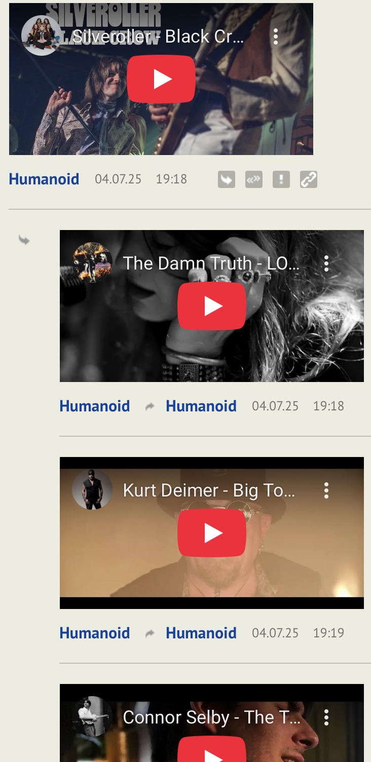 По поводу моей просьбы поясняю для всех: на YouTube подбор видеороликов, интересующих пользователя, осуществляется с помощью алгоритмов. Мне бы не хотелось, кликнув по ролику с композицией, название которой не видно целиком, случайно запустить песню, которая мне заведомо не понравится — ведь после этого YouTube начнёт регулярно подсовывать мне подобный контент, решив, что этот жанр меня интересует. В случае, если миниатюра будет сопровождаться названием ролика, я смогу хотя бы загуглить название группы/исполнителя и/или композиции и понять, будет ли это мне интересно вообще. Разлогиниваться же из YouTube каждый раз, когда я захожу на “Песенки”, мне совсем не хочется. Полагаю, многие чувствуют то же самое — об этом, в частности, говорит соотношение плюсов и минусов под вчерашними “простынями” Humanoid’а.
