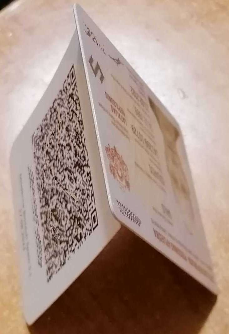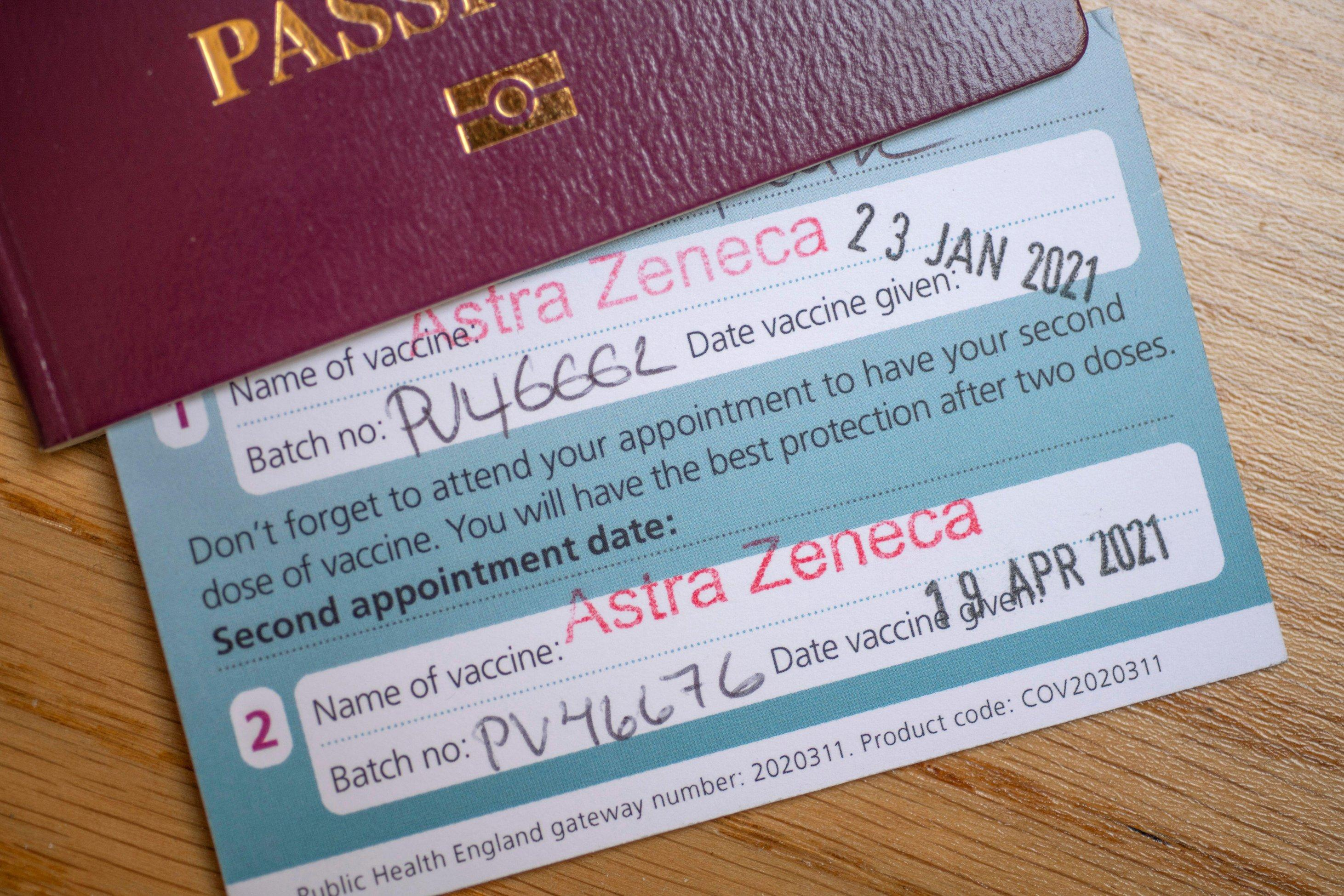 В Британии тоже дают подобную карточку (с именем пациента, названием вакцины, датой вакцинации и номером дозы), но она предназначена только для личного пользования, потому что в необходимых случаях вам придется показать проверяющим куар-код на телефоне или бумажное письмо от NHS (службы здравоохранения) с куар-кодом (его можно заказать на сайте NHS).