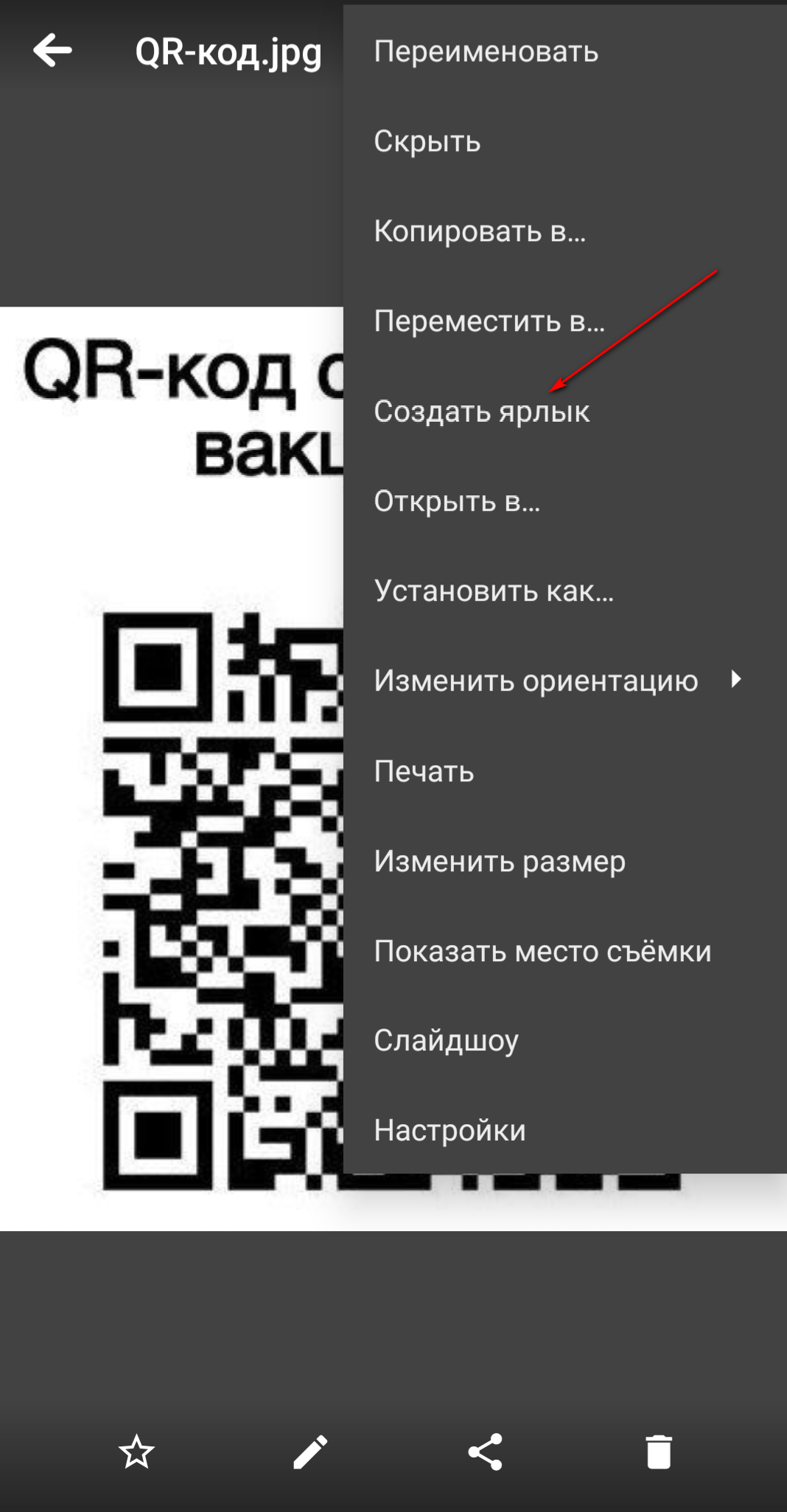 2. В приложении "Мои файлы" нашел скриншот, длинным нажатием вызвал меню внизу