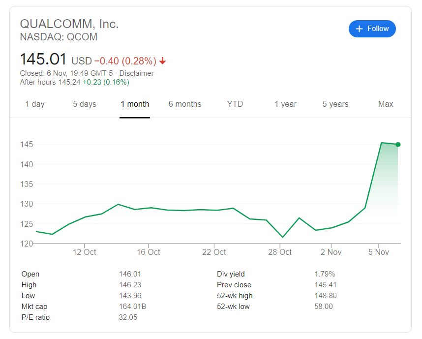 Qualcomm ФСЁ? То-то его акции скакнули на 18% за неделю.