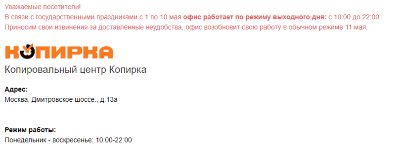 Режим работы в праздники.