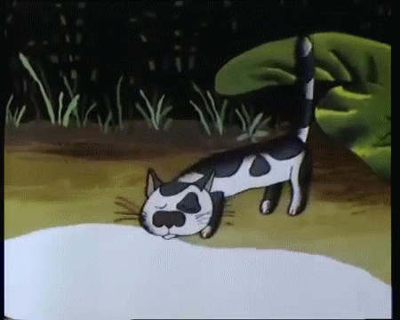 В начале был прикольнее момент, когда кошка пила молоко и подглядывала глазом, который закрашен.
