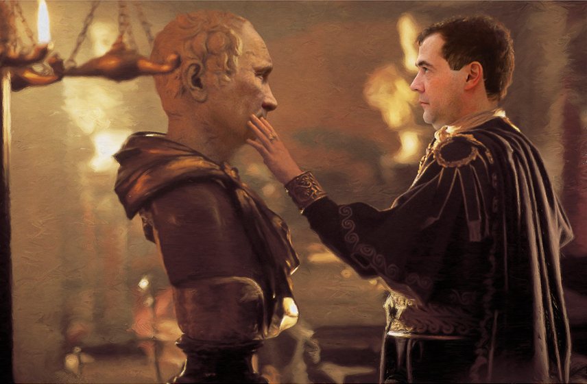 Оказывается, рисунок в календаре с Путиным и Медведевым в боксерском поединке принадлежит перу художника Андрея Будаева. Я не удержался и потом купил этот календарик за немаленькие для календаря деньги (2000 рублей), но оно того стоило - работы совершенно замечательные и очень стебовые. Настоятельно рекомендую сайт Будаева, где все эти календари выложены.