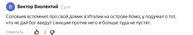 Честные слёзы Соловьева могут быть только на тему своего домика на озере Комо и заблокированных счетов в европейских банках.