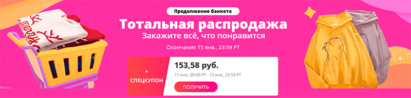 Мои именные промокоды с воскресенья использовали почти все (там количество ограничено, поэтому если скидки актуальны, то клювом в большой семье лучше не клац-клац - у каждой статьи "Делимся находками" по 30-50 тысяч прочтений, а промокодов выделяют явно не десятки тысяч; сколько именно выделяют - мне, к сожалению, не говорят, я бы написал), на данный момент вроде остался рабочий только exLer100jan - скидка 100 рублей при заказе от 800 рублей.
