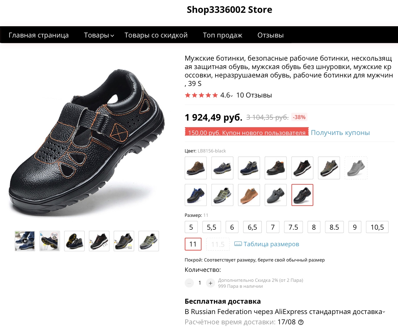 Для жары смотрим что-то открытое, не ботинки. По вашей ссылке рабочие сандали на фото: