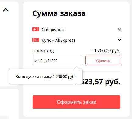 Промокод ALIPLUS1200 — на 1200р. на любые товары на сумму покупки от 10000р.