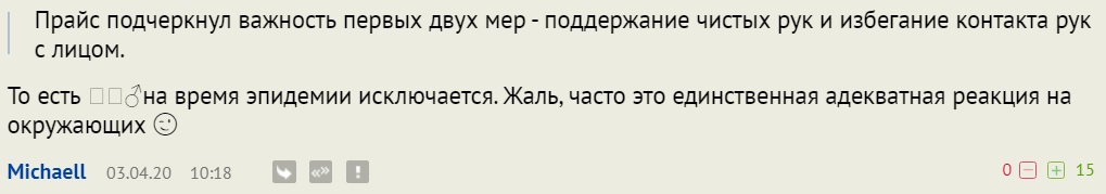 Я, кстати, себя к оптимистам отношу. Хотя, конечно, руки мою и к родителям перестал ездить. Но думаю, что в итоге никаких миллионов умерших не будет. Что, впрочем, ничуть не отменяет стремления минимизировать это число.