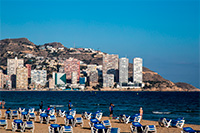 Бенидорм - самый неиспанский из испанских городков. Находится в провинции Аликанте в составе автономного сообщества Валенсия. Как туристический центр начал развиваться в шестидесятые годы прошлого столетия и, в отличие от обычного для туристических городков стиля, когда город застраивается небольшими и уютными отельчиками, резко стал расти вверх, что для средиземноморского побережья Испании, вообще говоря, совершенно нехарактерно.