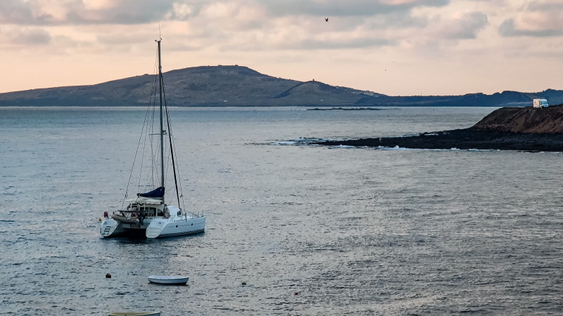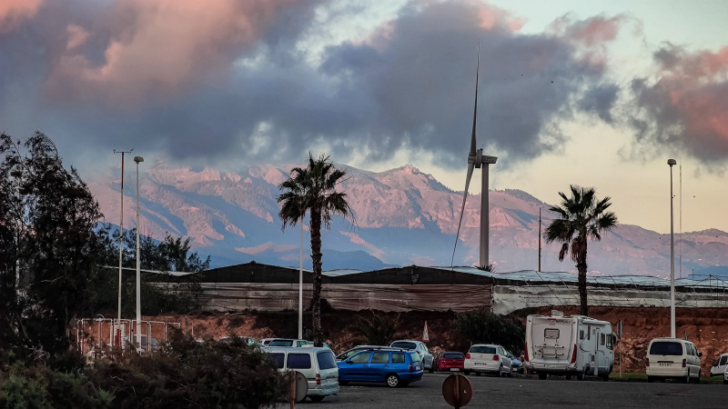 Ветряк возвышается над городом. Здесь вообще полно ветряков, мы видели целые долины с ветряками. Но оно и понятно, на островах очень ветрено, так что почему бы этим не воспользоваться?