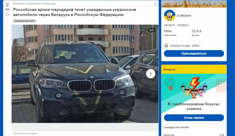 При этом я ни разу не спорю, что российские военные мародёрствуют только так (увы!). Но там всё более-менее "по мелочи", это ещё можно хоть как-то реально отправить домой. Но вот подобные "влажные истории" аж с целым автомобилем (особенно ещё и с фактически "чистосердечным признанием"!!!) – ИМХО, уже просто явный фейк.