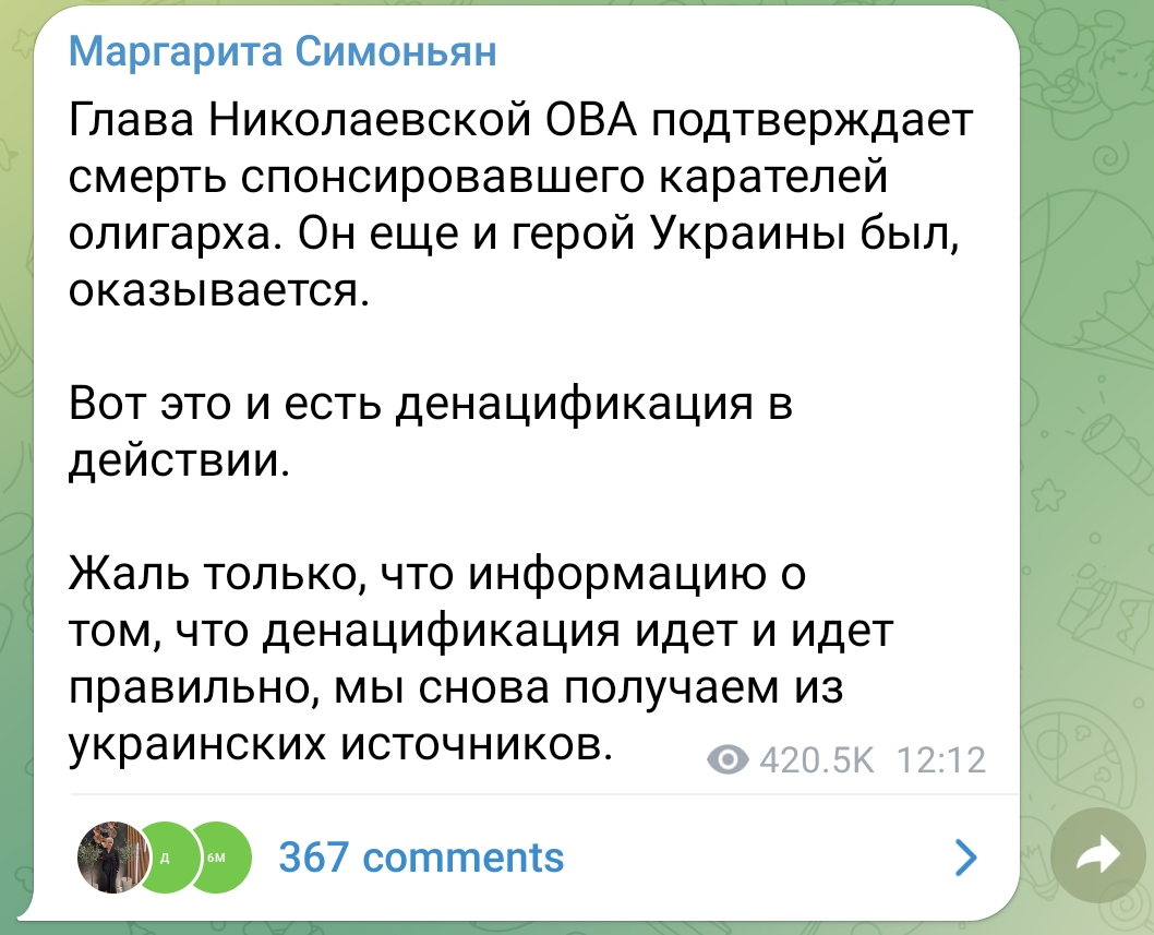 • Потом, когда следователей всё же допустили, включилась просто лютая бомбардировка пропагандонскими "версиями"-вбросами. От "испанских диспетчеров" и километровых самолётов – вплоть до "несвежих трупов", каждый раз всё бредовее и бредовее. Не проканало.