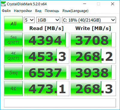 У современных SSD скорости, если безо всяких ухищрений вроде RAID0 и так далее (с RAID0 скорость увеличивается процентов на 20-30, но тоже совсем не на порядок), обычно и бывают где-то на уровне 500-600 мегов в секунду. А всякие цифры в 4-5 тысяч - это, думал я, небось какой-то кеш-контроллер стоит, который просто искажает результаты измерения.
