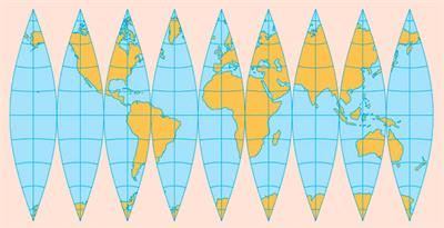 Шарик, порезанный по меридианам, который объясняет причину искажений. Вроде из школьного курса картинка?