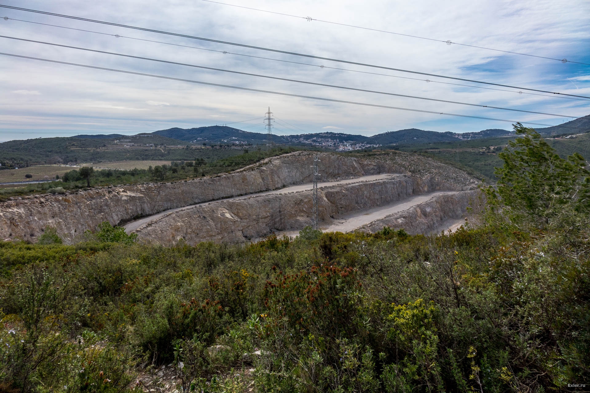 Ну и вот весь Пенедес как на ладони. Это долины между несколькими холмами. Из данного холма добывают известнях для строительства."