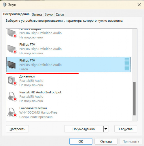 Найти ее очень непросто (в Windows, как известно, две разных системы настроек - гениально придумано). Это надо заходить через Панель управления - Звук, там выбрать соответствующее устройство воспроизведения звука (в моем случае - телевизор).