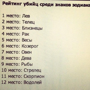 Рейтинг убийц среди знаков Зодиака