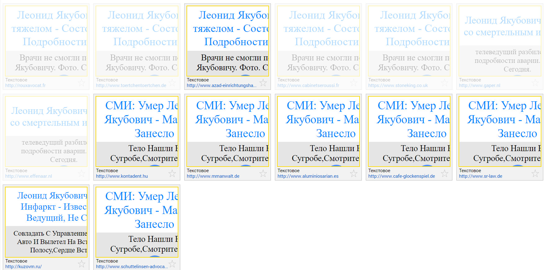 Там в движке явно какая-то дырка, потому что я этих баннеров и аккаунтов с "Умер Якубович" (он же "Газманов", он же "Назарбаев", он же "Павел Воля", он же "Пенсии повысят в десять раз") забанил несколько сотен. А они появляются практически каждую секунду. Там присутствует дырка, через которую в огромном количестве регистрируются новые рекламодатели (что странно, потому что их по идее должны проверять) и они в диком количестве штампуют эти рекламные баннеры, ведущие на самые разные сайты (как правило, это мало чем примечательные обычные немецкие сайты, которые просто покупают трафик у всякого отстоя).