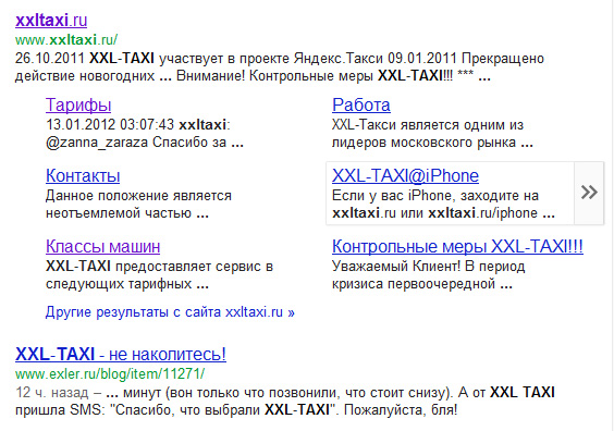 P.S. Кстати, вчера на обратном пути через тот же Яндекс.Такси вызвал TAXI@SMS (выбирал из четырех доступных, причем XXL-TAXI и "Сити-такси" отпадали по определению). Понравилось. Приехал очень шустро, машинка новенькая, цены нормальные. Вез, правда, не слишком оптимально (однако не беспредельствовал), но я хоть полюбовался на ночную Москву.