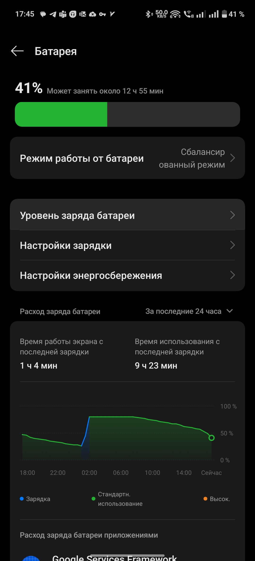 Потом прошло и расход стал на уровне 10% за час экранного времени. Не то чтобы невероятно, но вполне себе хорошо, давно на топовых процессорах такого не видел
