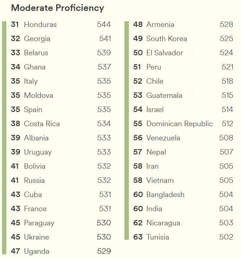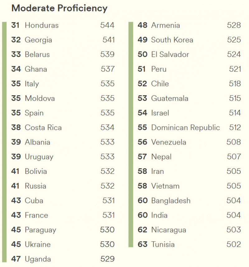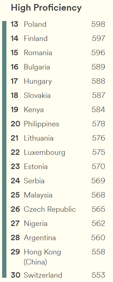 Рейтинг стран по уровню владения английским