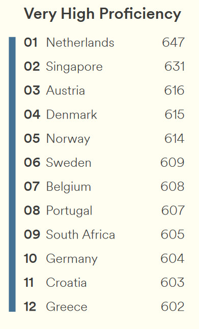 Рейтинг составлен хз как. Да, в Дании, Германии все знают и хорошо владеют. Но при чем там Португалия? Бывали, знаем. Местные не знают его. Хотя это №1 страна для туристов из Англии.