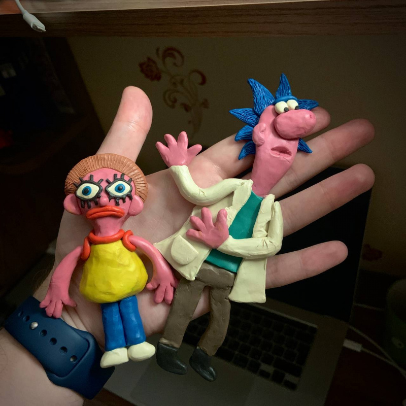 • Рик и Морти в стиле Александра Татарского (1950 – 2007) и Игоря Ковалёва (род.1954), создавших пластилиновые мультфильмы «Пластилиновая ворона», «Падал прошлогодний снег», а также рисованные «Крылья, ноги и хвосты», «Следствие ведут колобки» и многие другие.