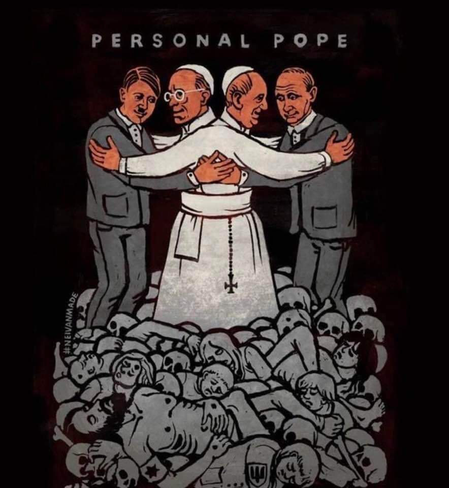 Теоретически, РКЦ во главе с Папой ведет тысячелетнюю войну с адскими легионами во главе с Сатаной. Но ей надо найти смелость поднять белый флаг и вести переговоры. Лучше сразу сдаться, но можно подписать мир с Люцифером. А может стоит объедититься ("один народ") и вместе идти на штурм Рая под единым командованием товарища Бафомета.