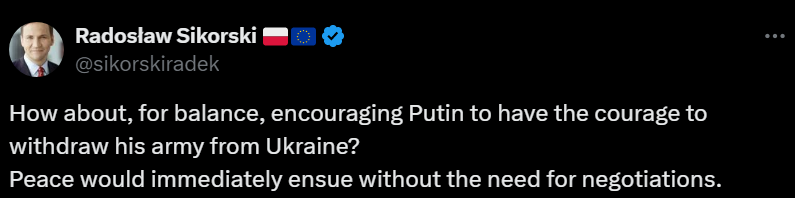 Типичный россиянин. У него мир - это капитуляция Украины.