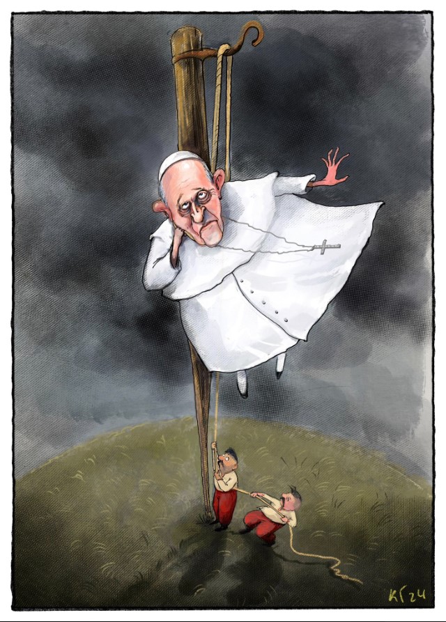В российских федеральных СМИ вдруг раскопали интервью Папы Римского швейцарской вещательной компании RSI месячной давности, где он говорит о конфликте в секторе Газа и о войне в Украине, и опубликовали заметки с заголовками из серии "Папа Римский призвал проигрывающую войну Украину поднять белый флаг".
