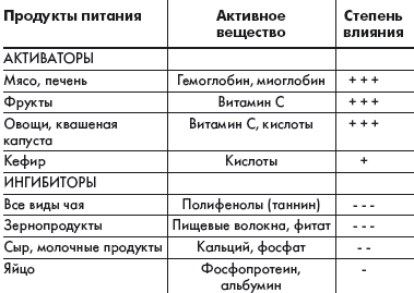 P.S. By the way: табличка не про усваивание железа, а про степень влияния ингибиторов на его всасывание. Три минуса не означают, что железо из круп не поступает в организм.