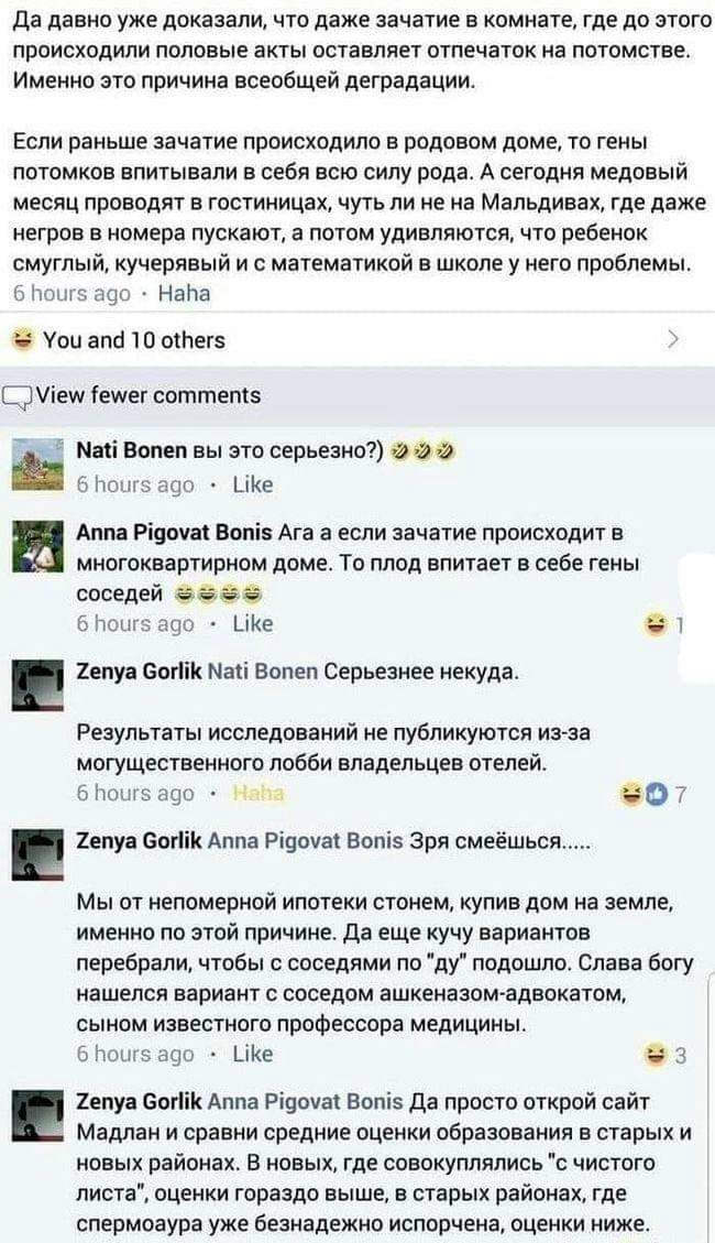 Сеть принесла милый дебилизм, где комменты тоже очень веселые. Однако у меня вопрос - а в родовом доме половые акты не происходили?