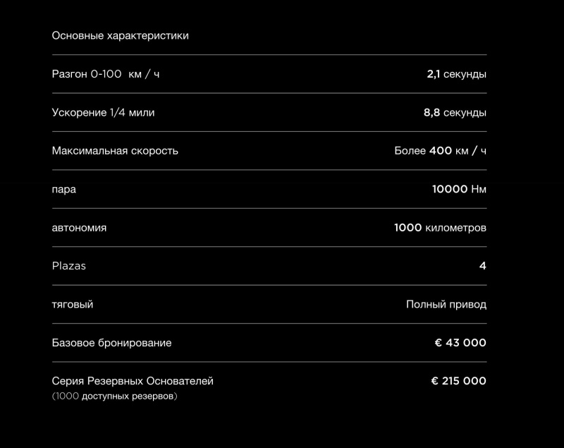 По существу? Ну, и фига из приведенной таблицы полезно? Время зарядки есть? Три часа? День? Двадцать минут? Автономность 1000. На какой скорости? Время торможения, средства безопасности, удобство управления, радиус поворота, модели шин... Человек взял неведому табличку и на основе этих мифических данных рассказал, что соперников нет. Ах, 0-100 за 2,8. Вау! Вы, со своими 2,9 более не конкуренты!
