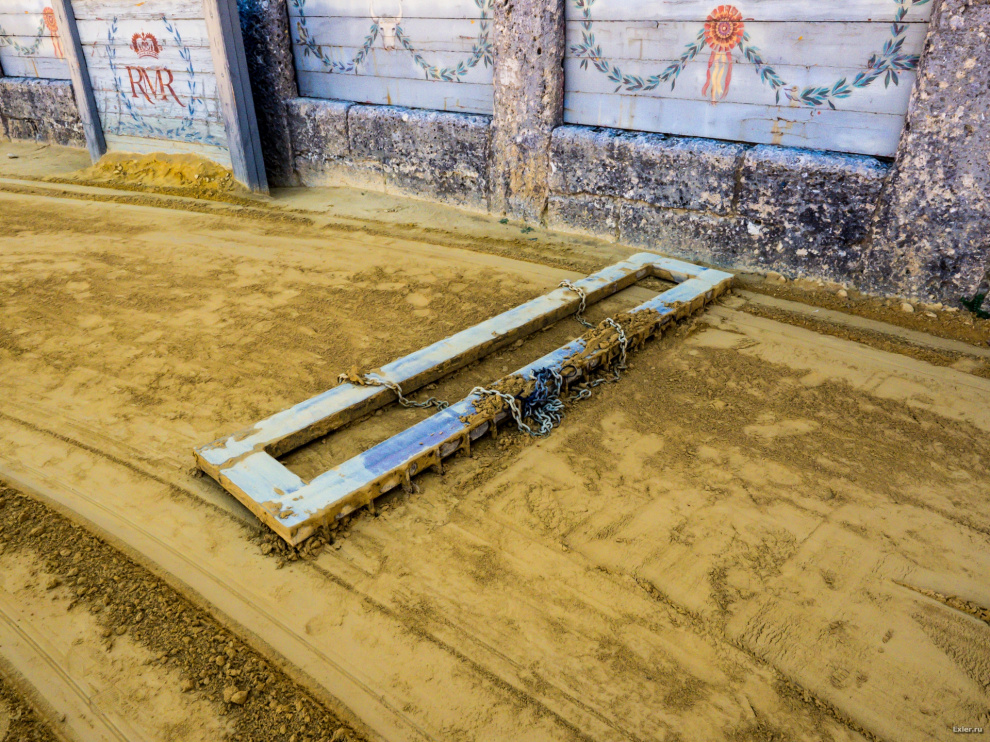 Вот так арена выглядит изнутри. Вообще обычно там бродят дикие толпы туристов, но мне повезло: из стойла на арену вырвался обезумевший бык и все туристы разбежались. А я не разбежался, потому что я в своем босоногом детстве работал пастухом и знаю, как укрощать быков.