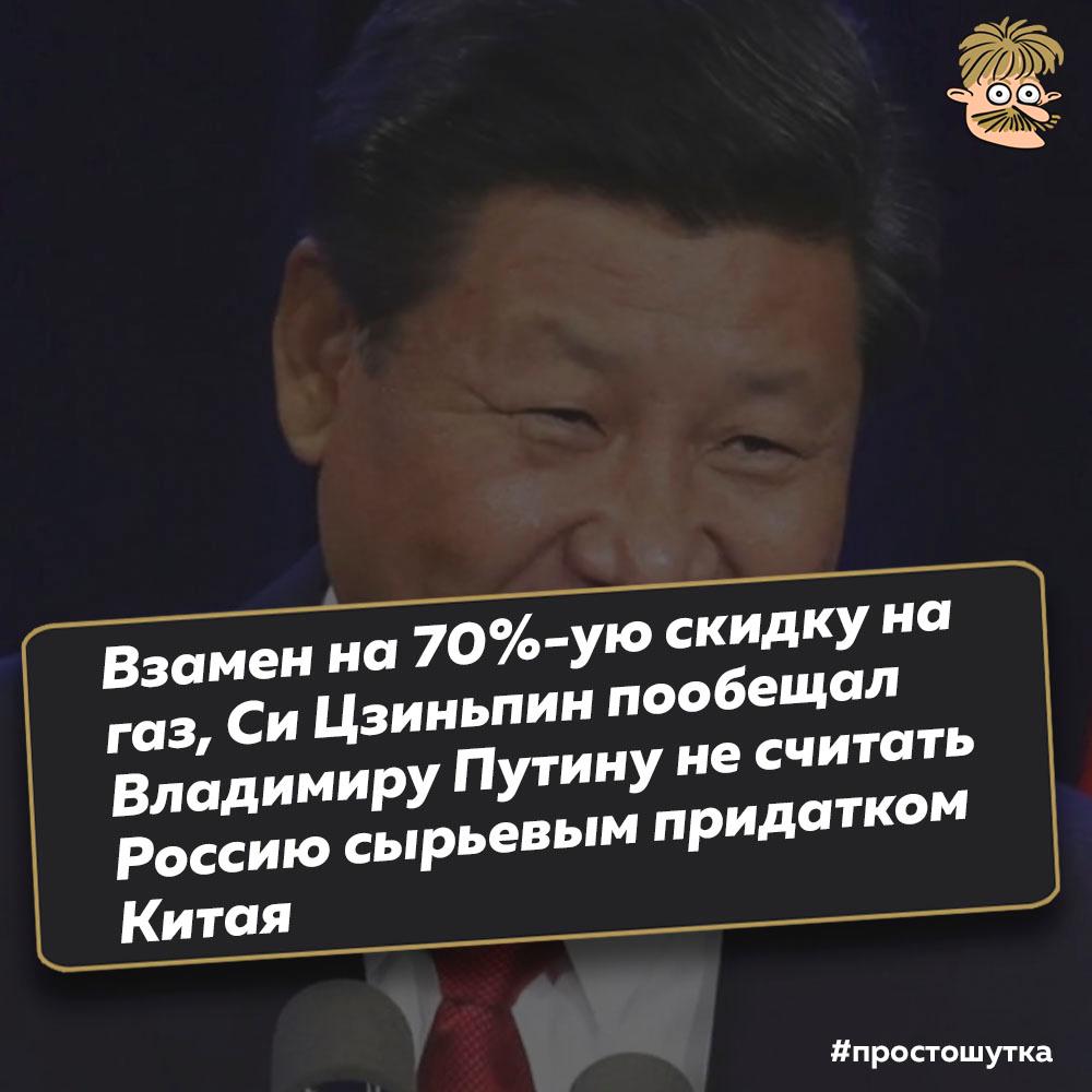Китай с удовольствием заберёт не только бесплатные роисские нефть и газ, но и по результатам скорых народных референдумов новые народные республики - ЯНР (Якутская Народная Республика), ТНР (Тувинская Народная Республика), БНР (Бурятская народная Республика) и прочие хреНР - путлеровские маленькие члены, свободно говорящие по китайски, не дадут соврать.