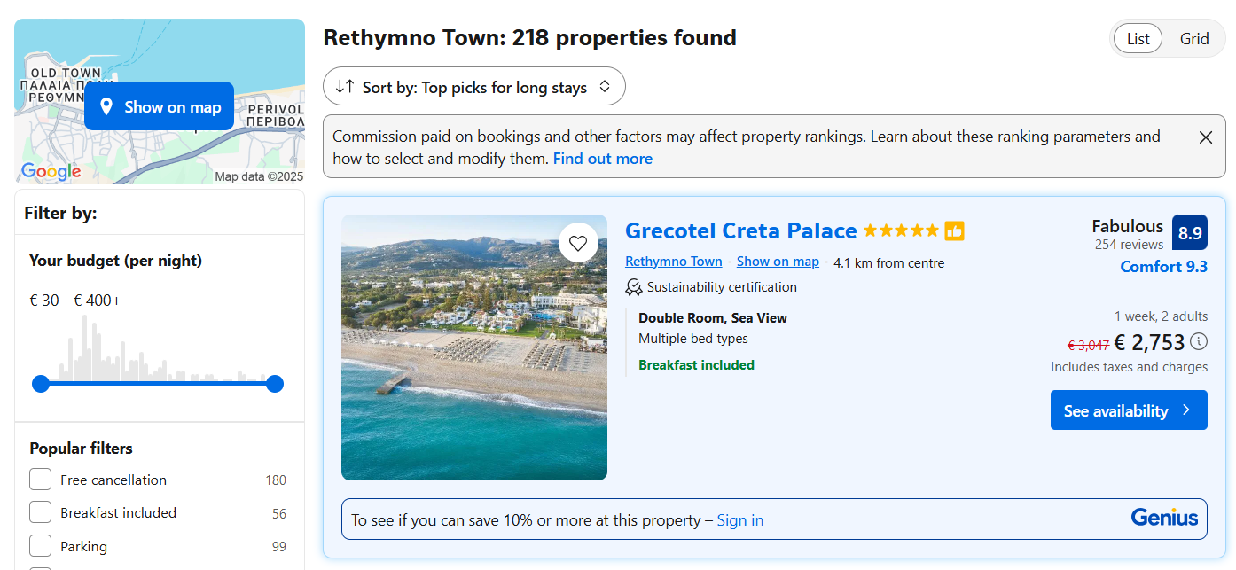 По Альдемару, который сейчас Mitsis Cretan Village, ситуация чуть другая, но он тоже есть в букинге, там есть места на сентябрь.