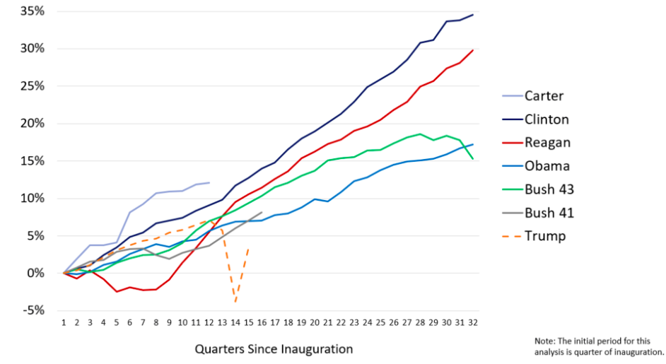 А если в ретроспекцию удариться, то нынешние какие-то пигмеи на фоне гигантов. Рузвельт, Кеннеди, Рейган. Да даже Клинтон с Бушем-младшим и Обамой выглядят весьма выигрышно по сравнению с.