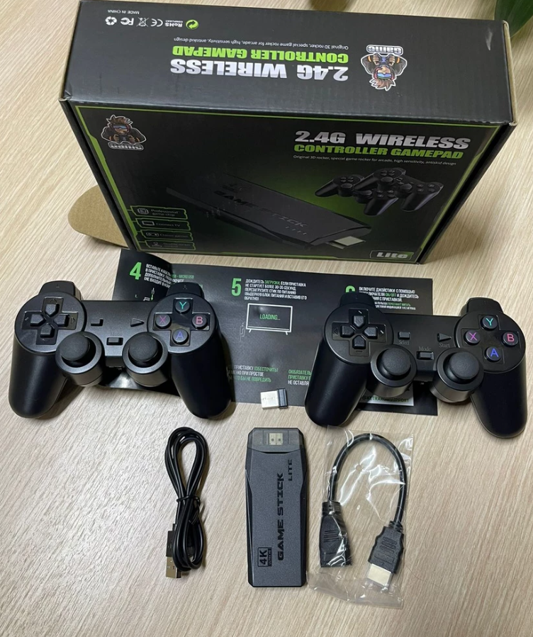 Потому что, видел на маркетах, неоднократно, китайские ретро-консоли (8-16 бит, 15-20 тысяч игр), в виде hdmi-стика. Так там и 2 джойстика беспроводных в комплекте есть.