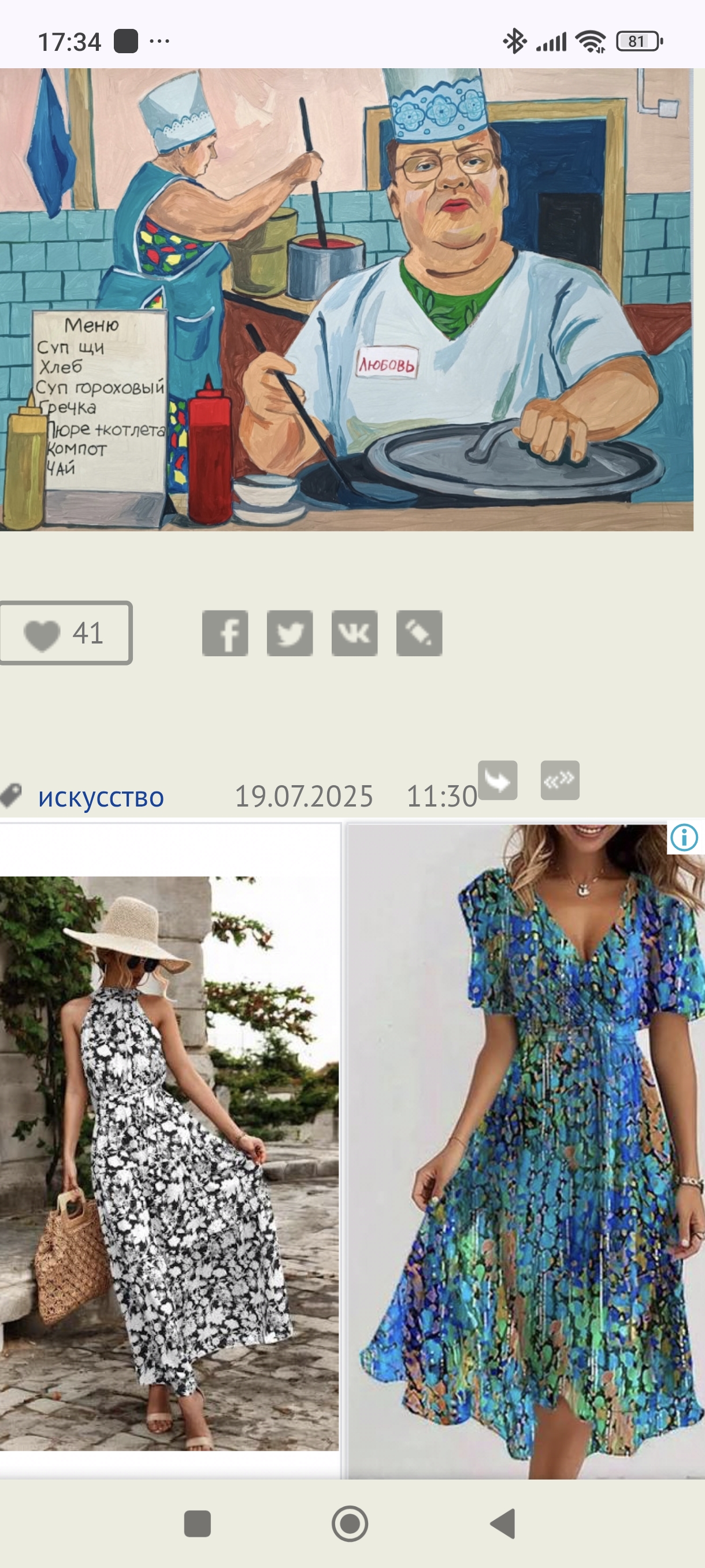 Характерный отзыв под одной из коллекций ее картин.