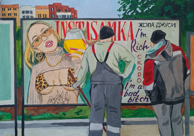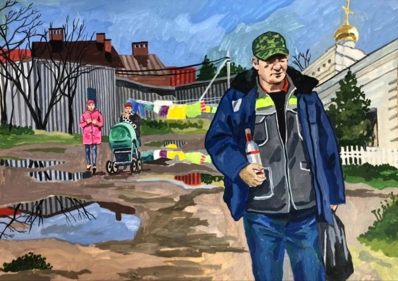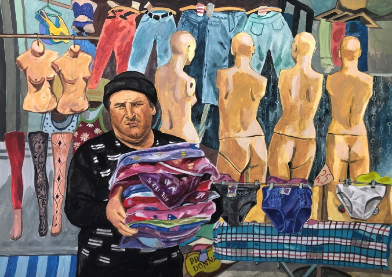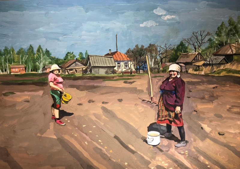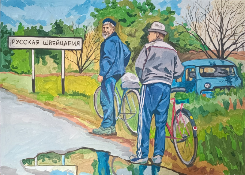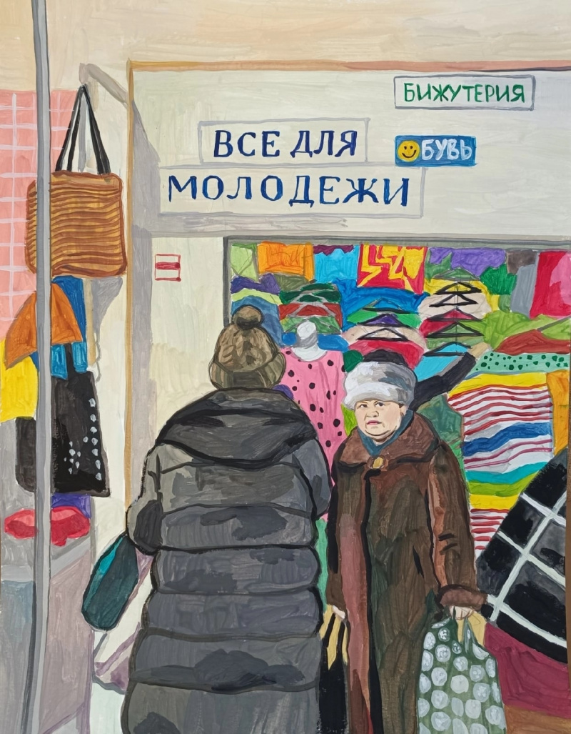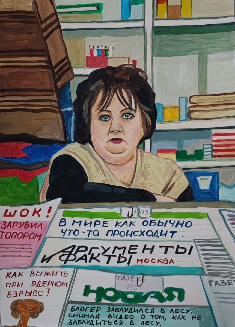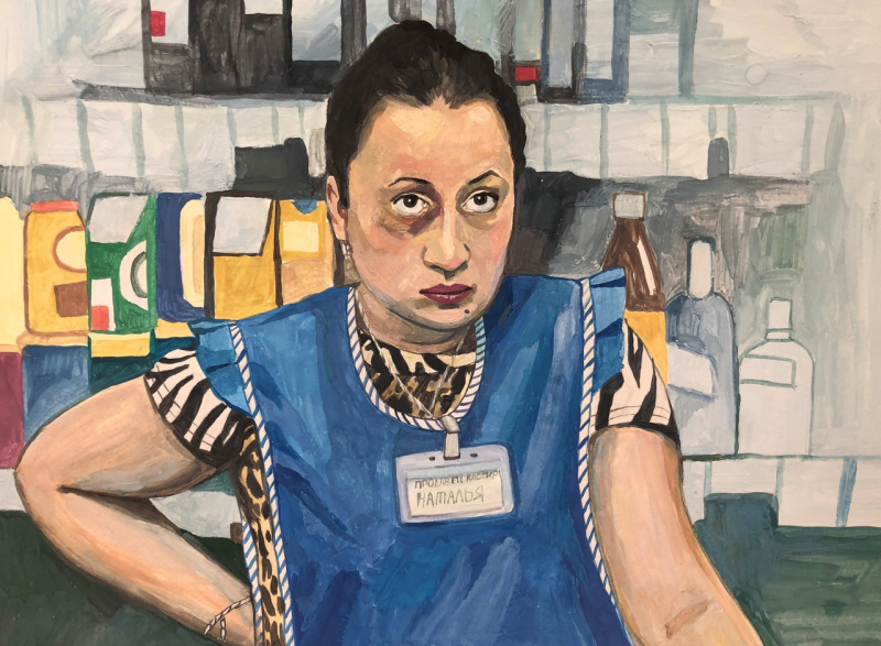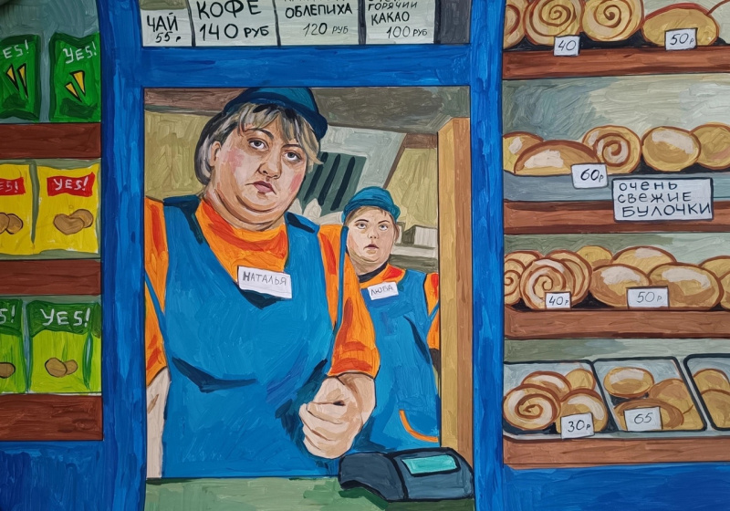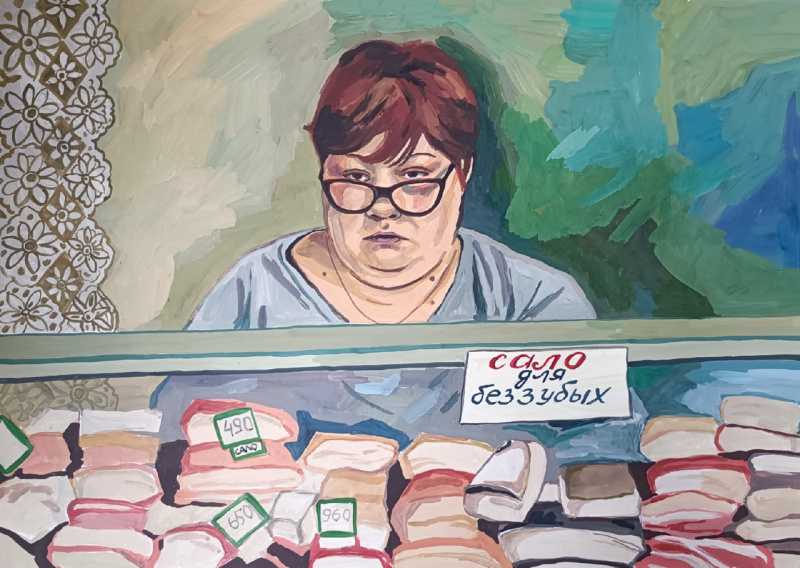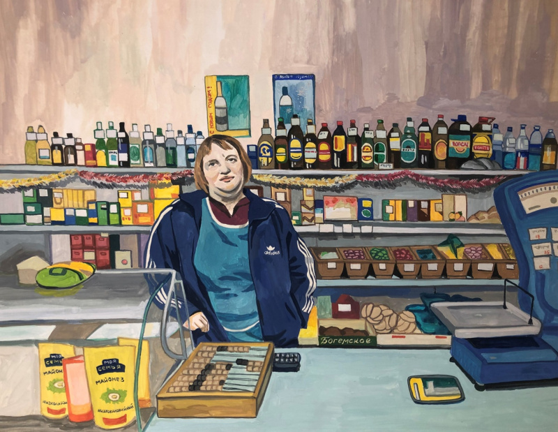 Художница Елена Запрудских рисует жизнь в российской провинции, где время как будто остановилось. Она эту жизнь никак не приукрашивает, просто отображает. Особенно ей удаются продавщицы и работницы "пищеблока". Но и всякие другие персонажи у нее очень хороши.