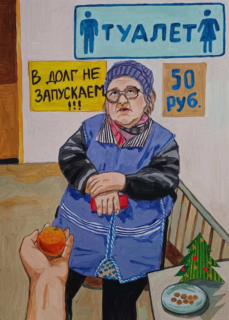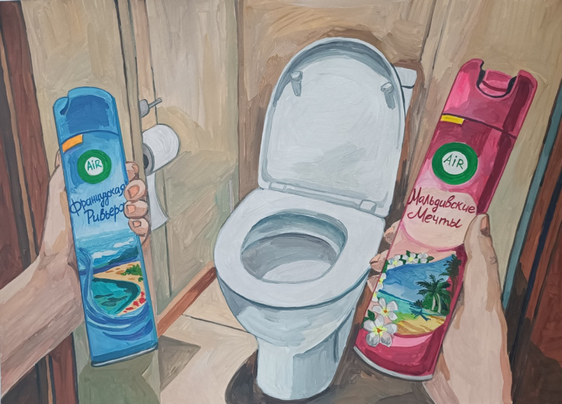 Кстати, запоздало подумал, что картинку с туалетом за 50 рублей и яблоком можно подписать "Прекраснейшей" 😄 Да и библейские мотивы проглядывают - Ева, змей-искуситель и всякое такое.