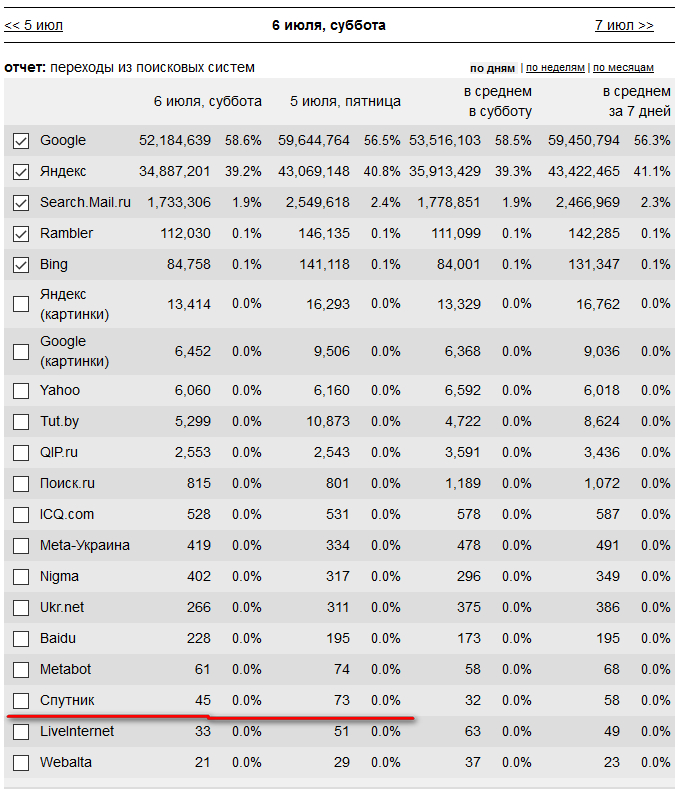 И как там нынче Спутничек-то поживает? Ну вот, например, за вчера по всему Рунету.