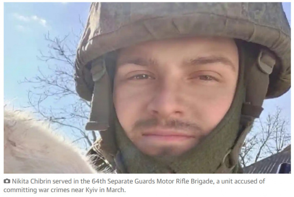 27-летний Никита Чибрин рассказал, что провел более четырех месяцев в Украине в составе 64-й отдельной гвардейской мотострелковой бригады: подразделения, обвиняемого в совершении военных преступлений в Киевской области в марте.