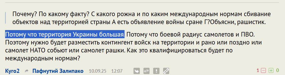 "По состоянию на сейчас ПВО и самолеты находятся на территории стран НАТО. И закрыть небо физически невозможно без их перемещения. Легче стало? "