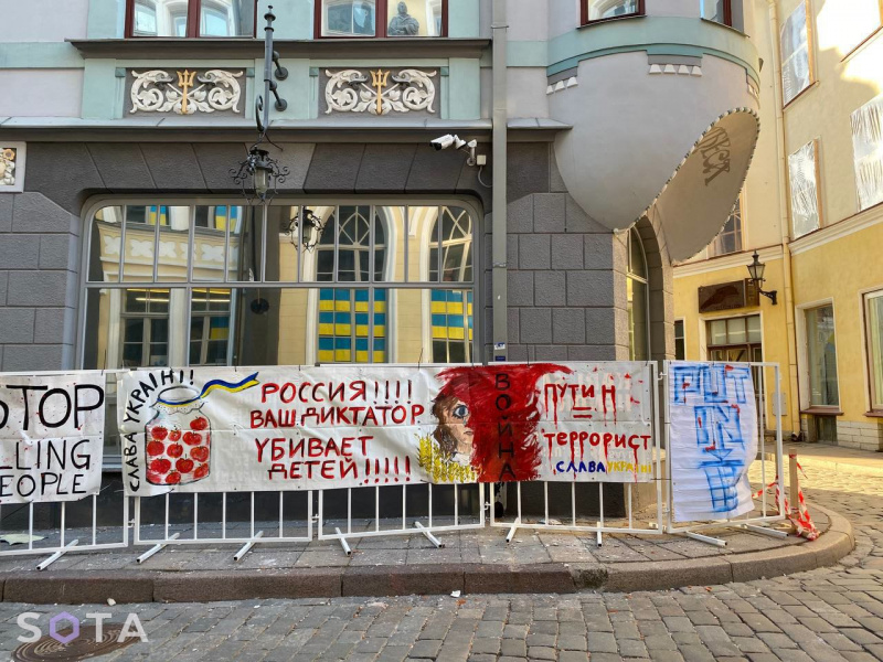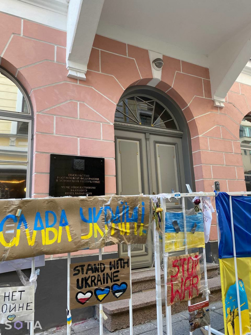 Ещё важный момент: как только война началась, были выставлены полицейские машины у российского и украинского посольств и российского консульства и стоят там круглосуточно. Кстати, российское посольство и консульство находятся а Таллинне на разных улицах, но имеют общий внутренний двор, так что это как бы одна территория.