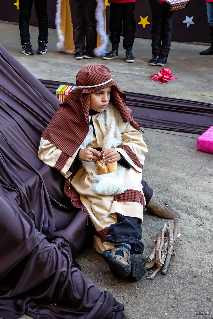 Печальный волхв. Не донес он дары, съел по дороге. В руках он держит бокату - традиционный каталанский бутерброд: багет, хамон, сыр.
