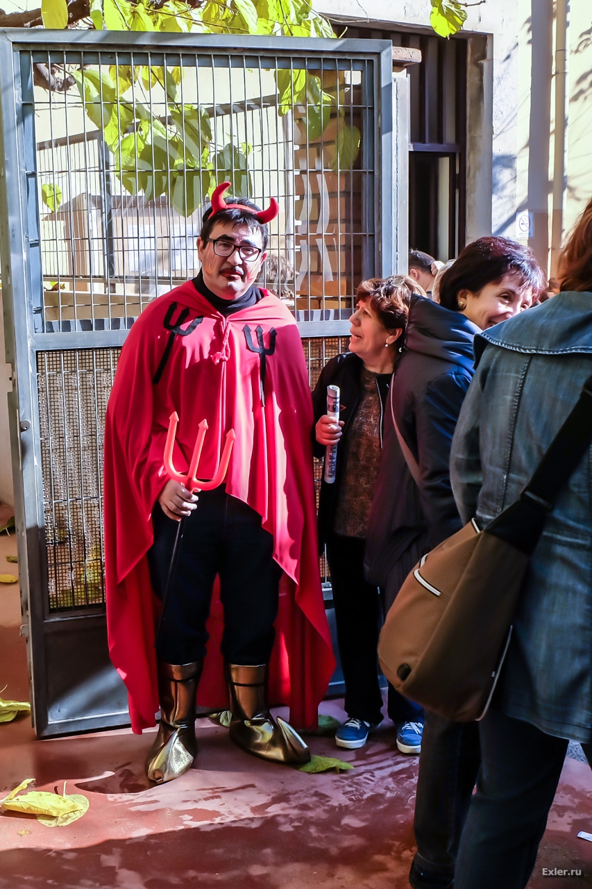 На выходе - особенно колоритный черт. Я думаю, что это сам Вельзевул. Ну, то есть школьный завхоз.