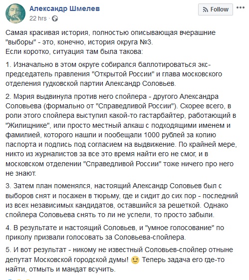 Но вот победил спойлер, да ещё не в каком-то Задрищенске, а в Москве, пожалуй, впервые)